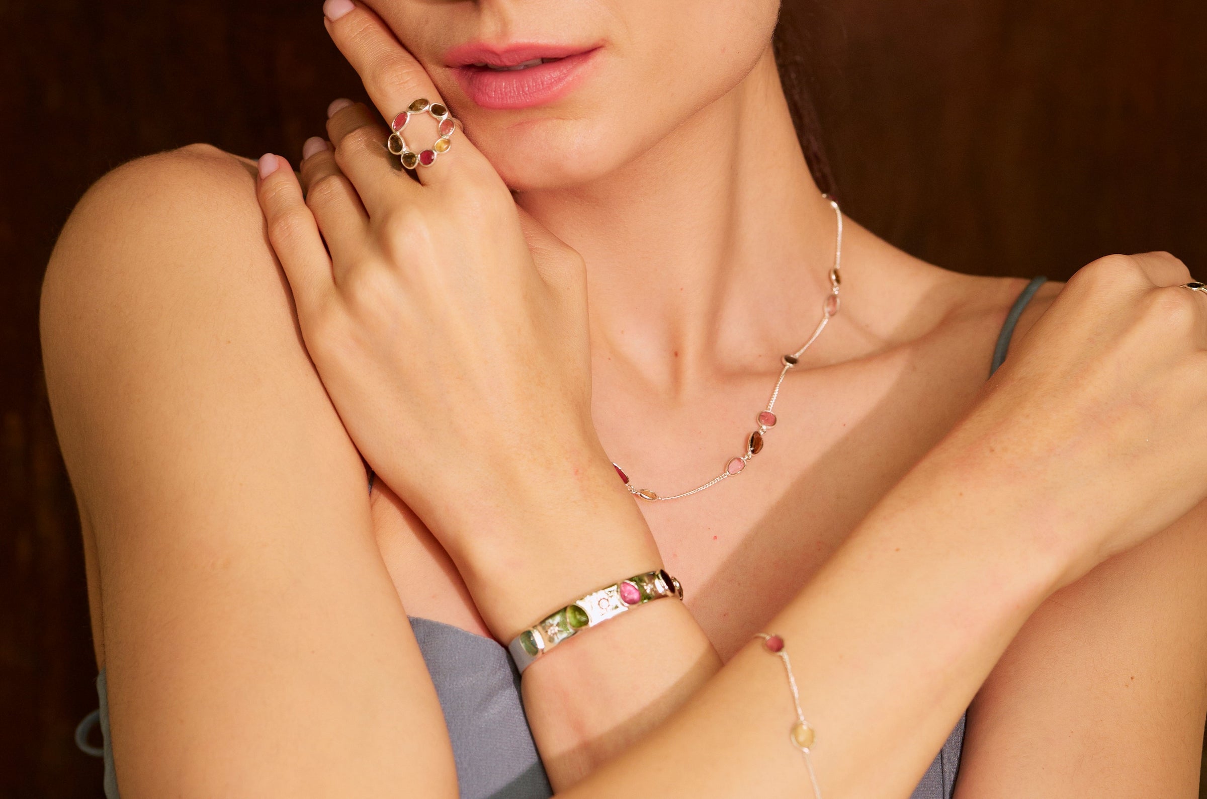 Each design is handcrafted in Sterling silver with 3 microns 18 KT gold plated. Studded with natural hand carved gemstones.