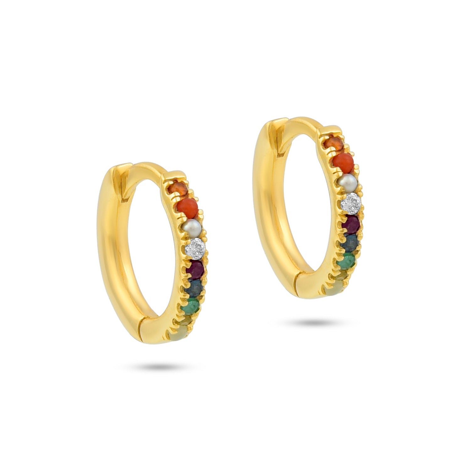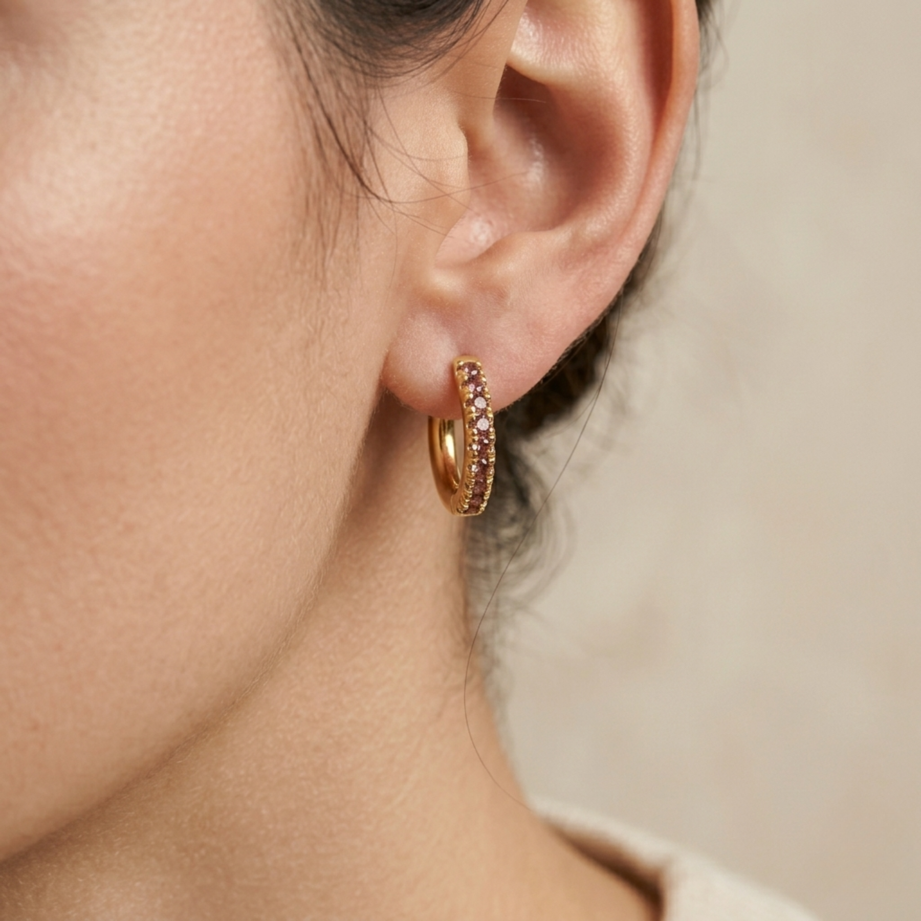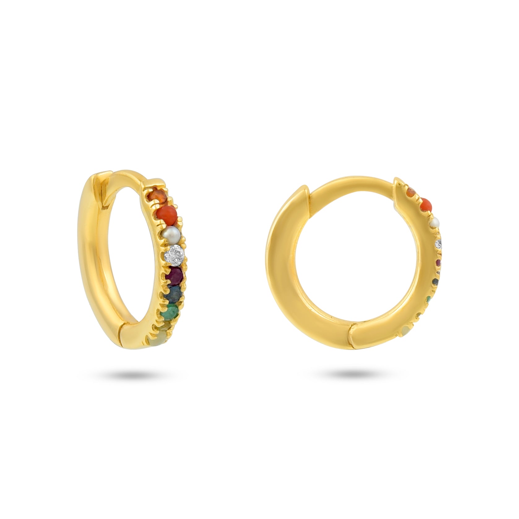 Elegant and versatile, these hoops are crafted in silver with 18 kt gold plating and adorned with delicate semi-precious stones, adding a subtle touch of sophistication. Their timeless design makes them perfect for everyday wear as well as special occasions.