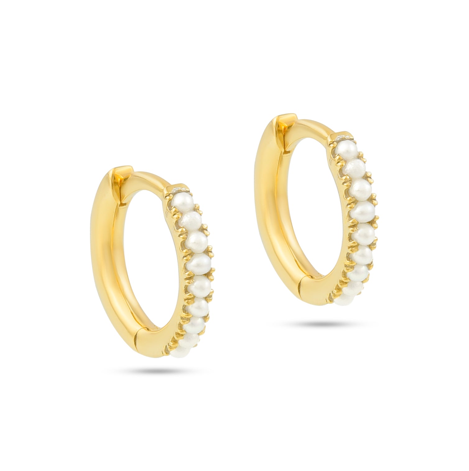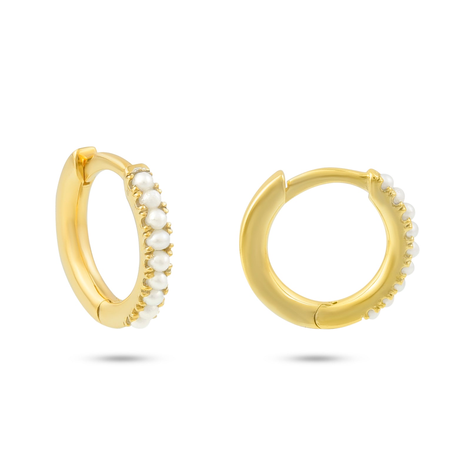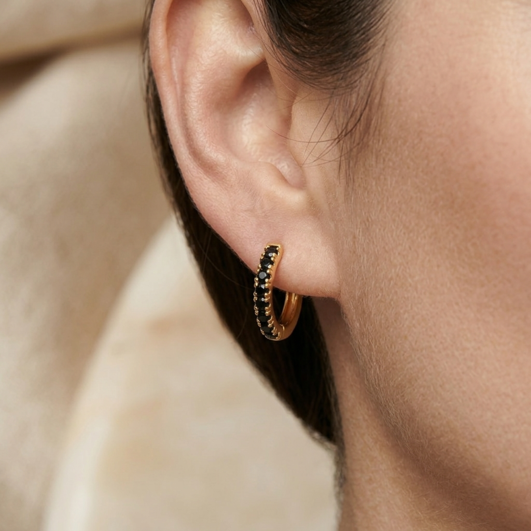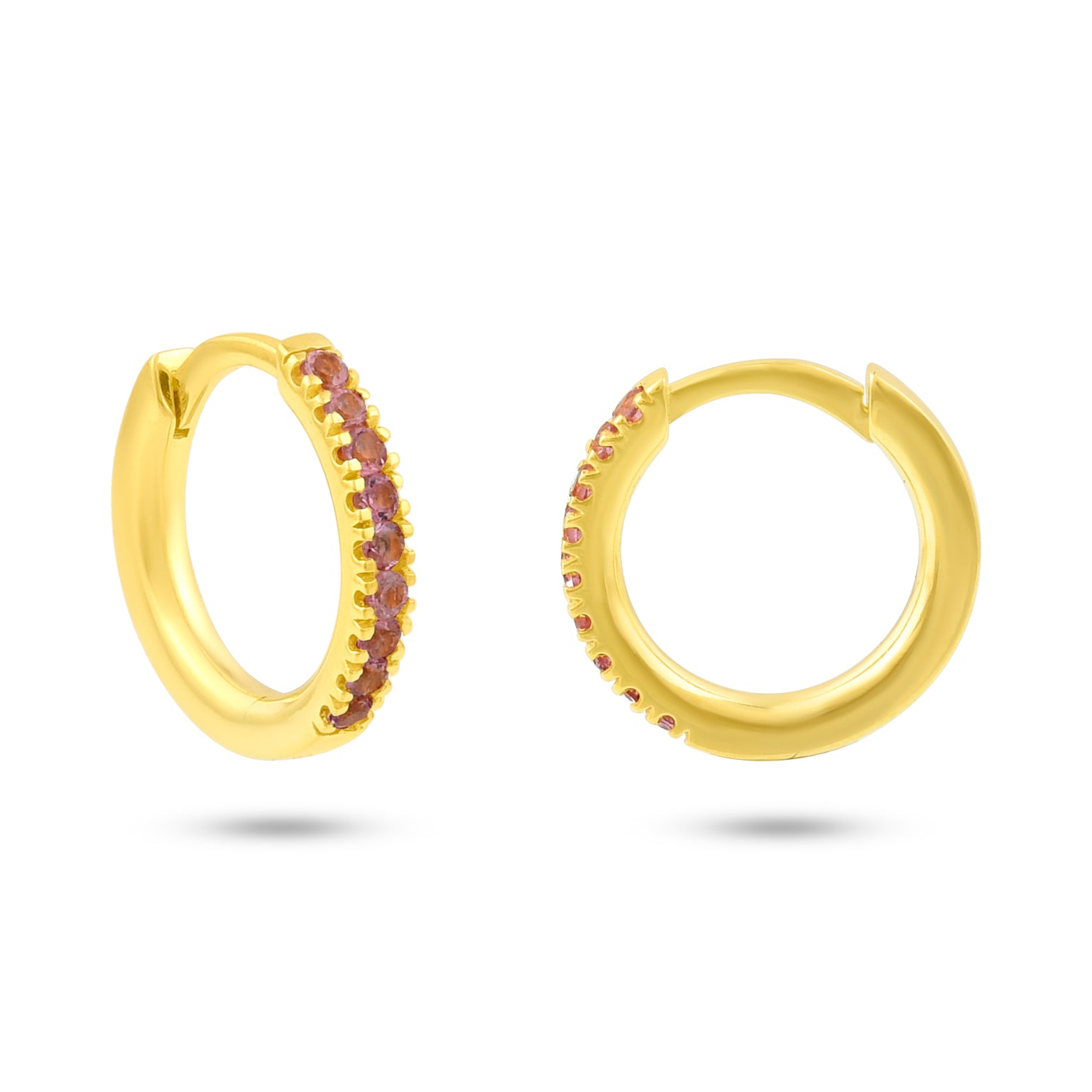 Elegant and versatile, these hoops are crafted in silver with 18 kt gold plating and adorned with delicate semi-precious stones, adding a subtle touch of sophistication. Their timeless design makes them perfect for everyday wear as well as special occasions.