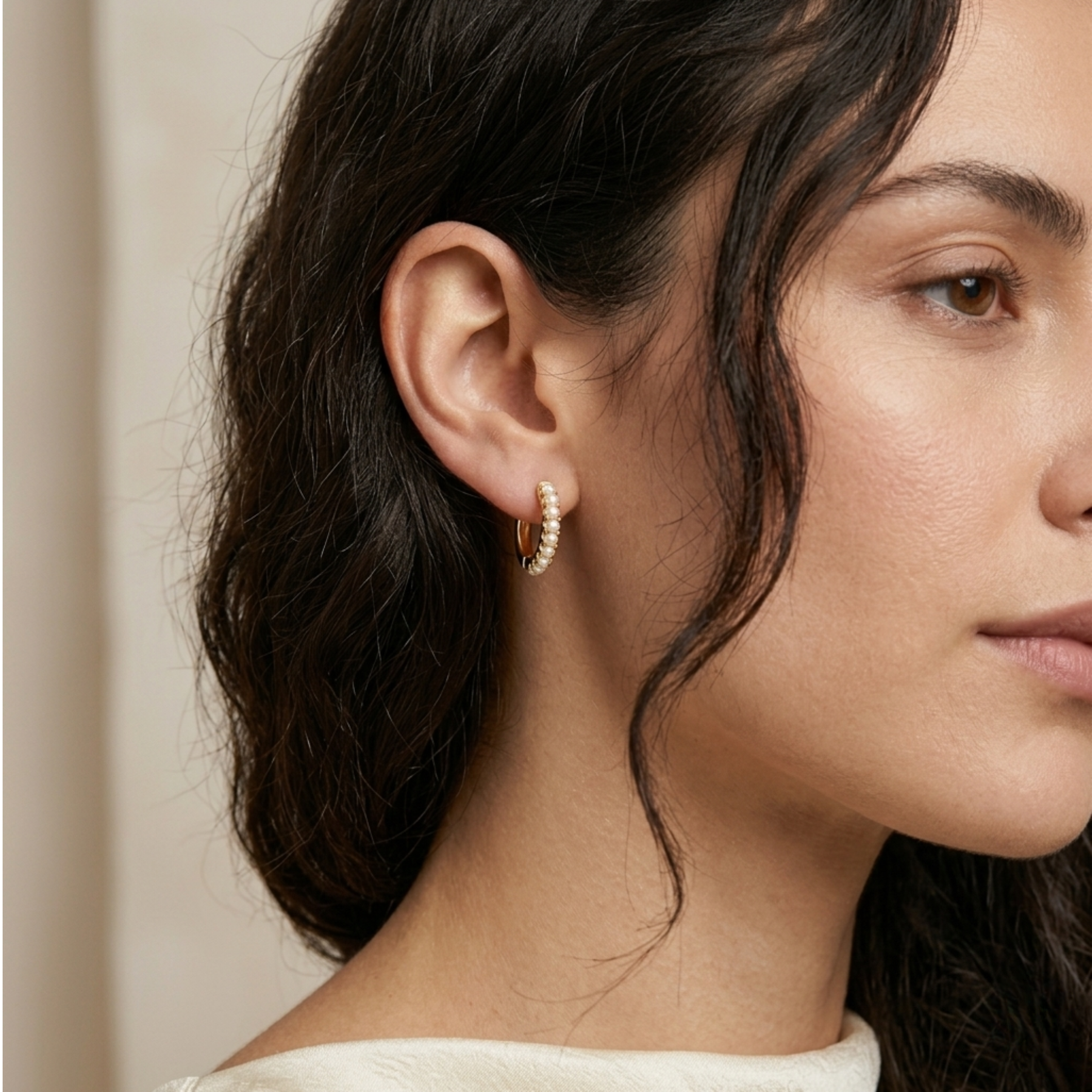 Style them effortlessly with our Camellia Earrings for a layered look, or customize your style by changing the hoop design to suit your mood and outfit.